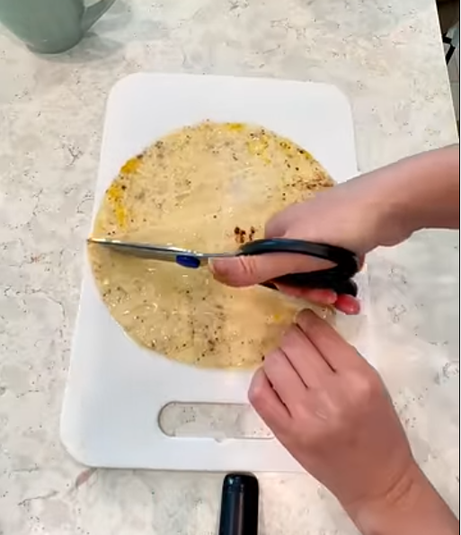 Using kitchen scissors or a knife, cut a small triangle notch at the bottom center. just about 1 inch deep. This helps with rolling.