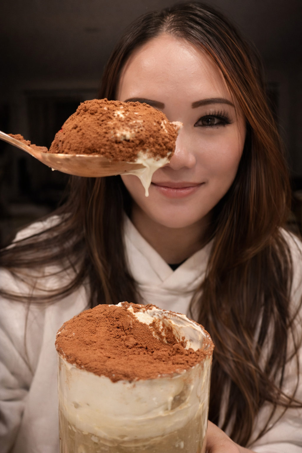 The espresso, creamy yogurt, and chocolate powder create the classic tiramisu flavor profile.